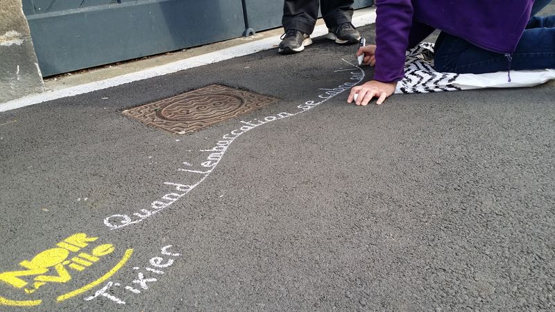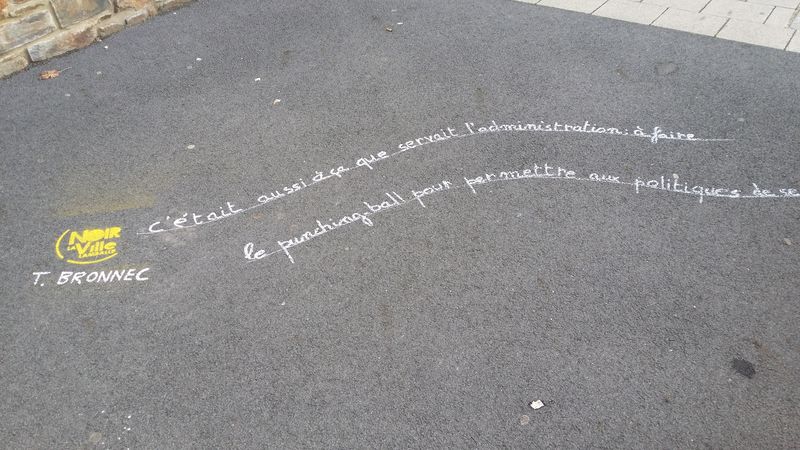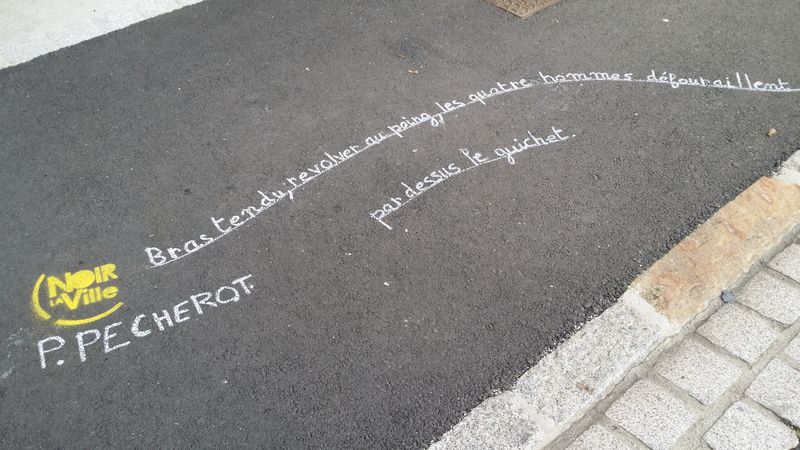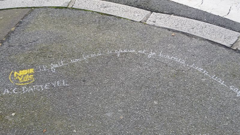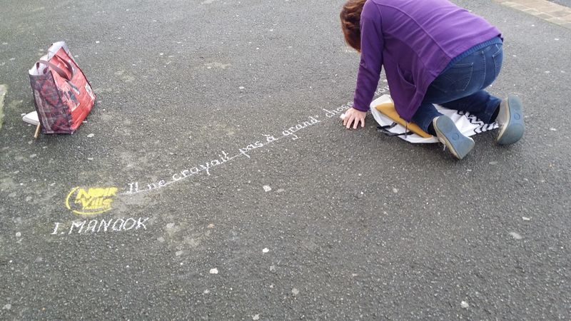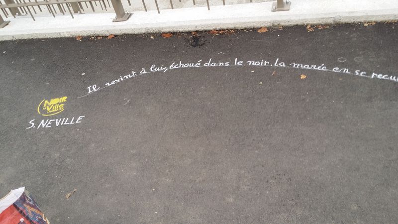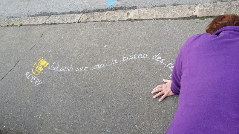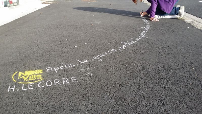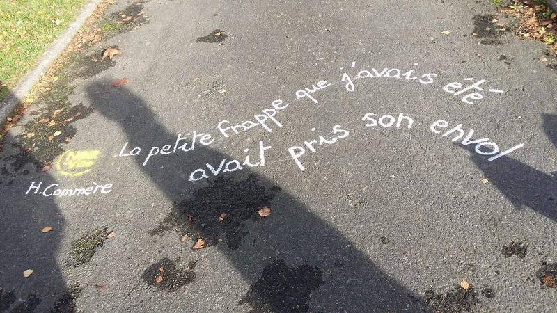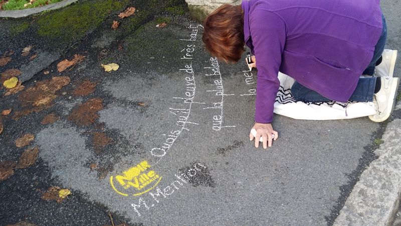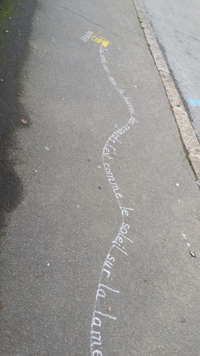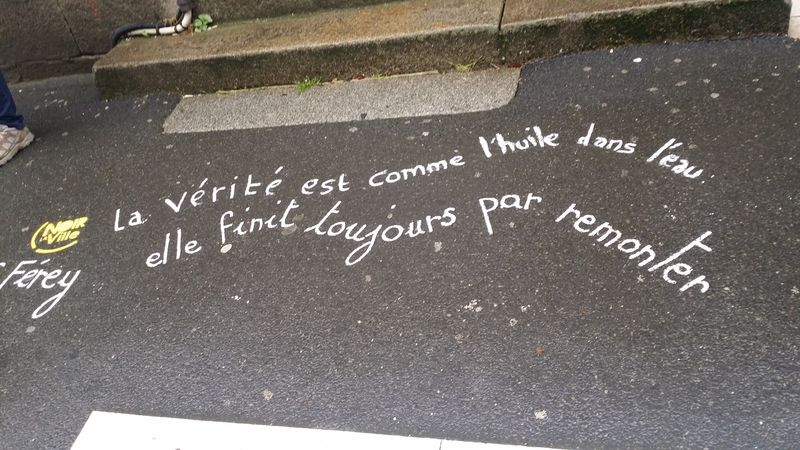 Pour accompagner les vitrines de Lamballe qui se sont parées des couleurs du festival, les trottoirs accueillent à leur tour les écrits des écrivains de l’édition 2016..